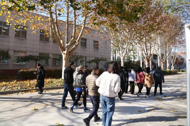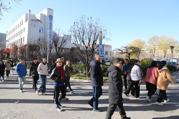 活动当天,教职工们身着便装,从教三楼出发,沿一食堂、教一楼、主楼广场有序前行。冬日的校园虽带着微凉,却挡不住大家的热情——沿途既有教师间的亲切问候,也有同事们关于教学科研的交流探讨,偶尔驻足欣赏初冬校园的落叶景致,欢声笑语洒满路径。本次健步走节奏轻松舒缓,兼顾运动强度与休闲体验,让教职工在忙碌工作之余放松身心,感受校园自然之美。