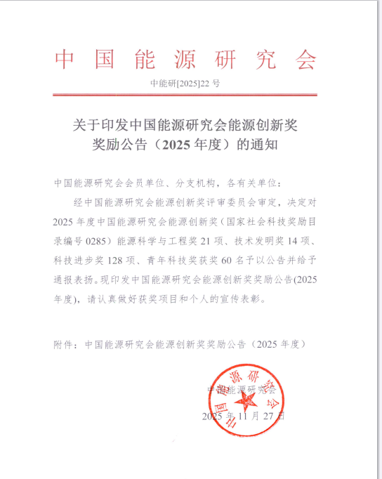 2025年11月27日,中国能源研究会发布了能源创新奖奖励公告(2025年度),公布了各类获奖名单。由王学棉教授主编的《电力法学原论》荣获“能源科学与工程奖”三等奖。